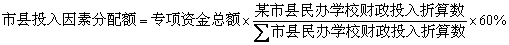 某市县民办学校财政投入折算数=该市县民办教育的投入数×财力系数